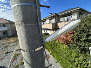 今回の防犯灯の取り替え工事は、電気工事士1名で対応し、5基すべての交換作業を含めた予測作業時間は約3〜4時間程度でした。既存の電柱や配線を活かし、安全確認と点灯試験を行いながら作業を進めています。