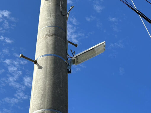 既設の蛍光灯防犯灯を撤去し、新たにLED防犯灯へ交換する電気工事を実施しました。